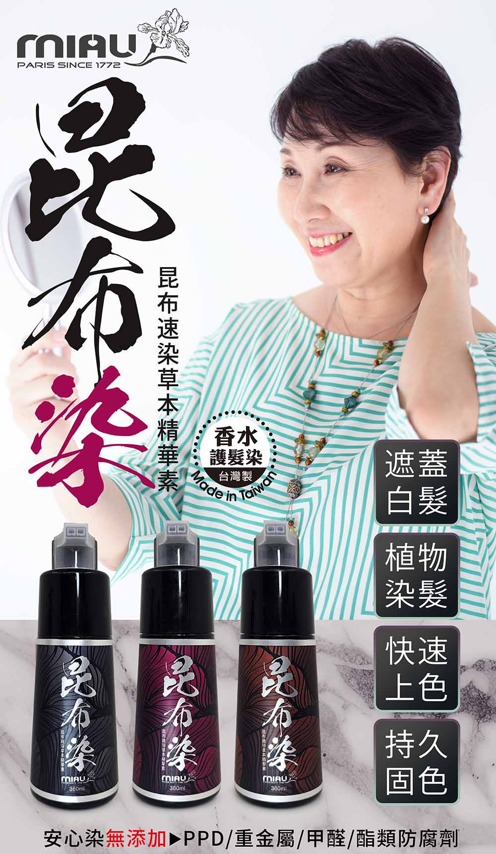12分鐘前MIAU【昆布速染草本精華素】完美遮蓋白髮/染髮只要10分鐘/修護和鎖色的無臭配方/台灣生產〈無添加PPD/重金屬/甲醛/酯類防腐劑〉 - 均460/瓶►昆布染黑+紅+棕3瓶組