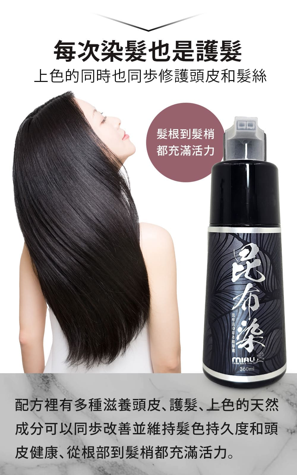 MIAU昆布染髮素用量依個人髮量與髮長並可完美附著且深入每根髮絲為主,