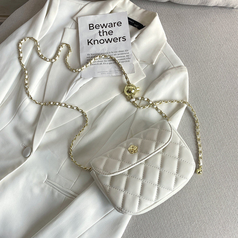 4分鐘前優雅時尚‧經典菱格繡線高級牛皮精緻質感金色花朵配飾小香風鏈條金球單肩小方包 - 一組入