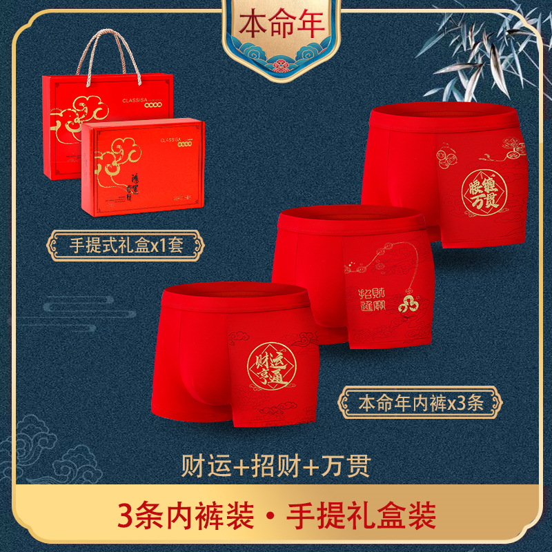 半小時前【本命年必備】龍年内褲大紅色男士内褲莫代爾平角褲四角褲套裝 - 【買一贈二,3盒裝】僅需NT$1240(均價NT$413)