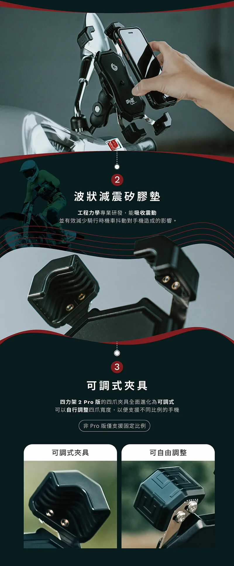 12分鐘前GC 四力架2 / 2s 單手操作 快人一步 最新四力架2 Pro 自動夾緊 USB充電 無線充電兩用機車手機架 外送必備 接單神器 - 媽祖款-紅色 2s Pro(快充版)一入組NT$1,180