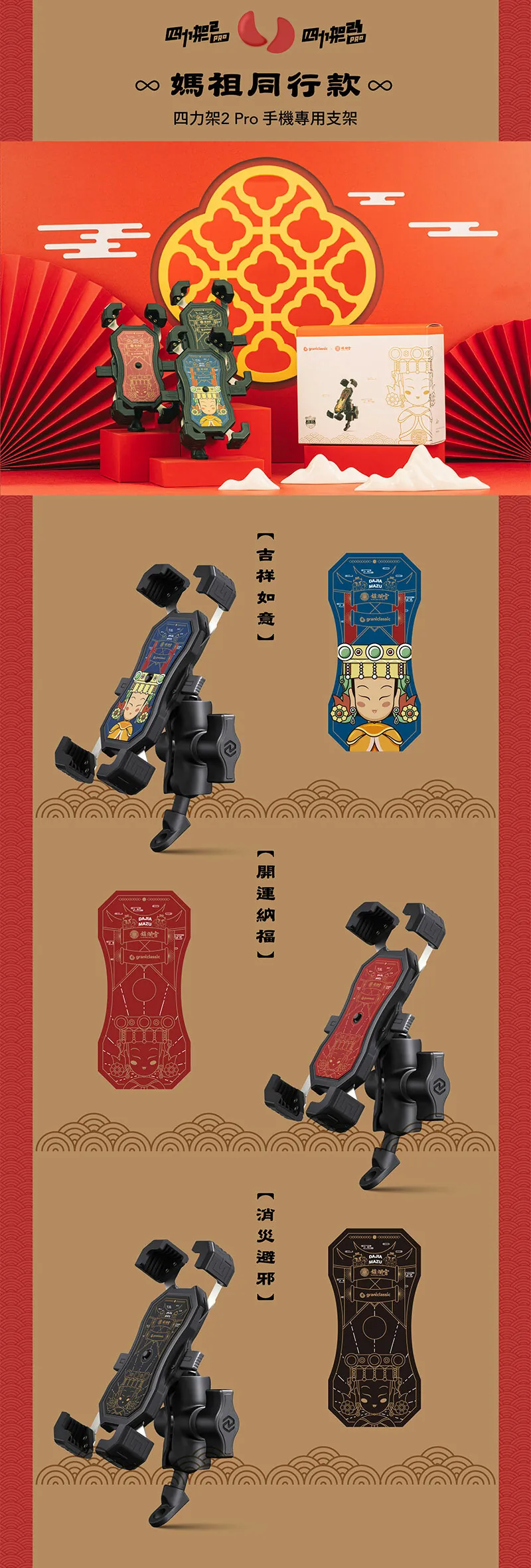 半小時前GC 四力架2 / 2s 單手操作 快人一步 最新四力架2 Pro 自動夾緊 USB充電 無線充電兩用機車手機架 外送必備 接單神器 - 媽祖款-紅色 2s Pro(快充版)一入組NT$1,180