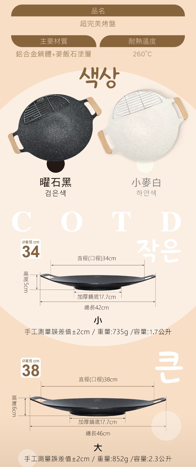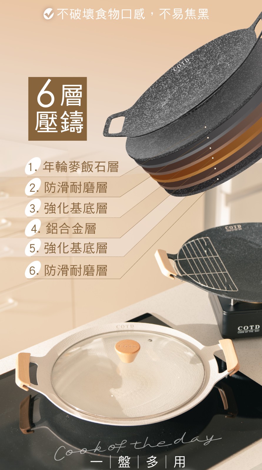 2分鐘前一鍋多用!聚餐必備好幫手! COTD超完美韓國烤盤 - COTD超完美烤盤34CM 售價NT$1180
