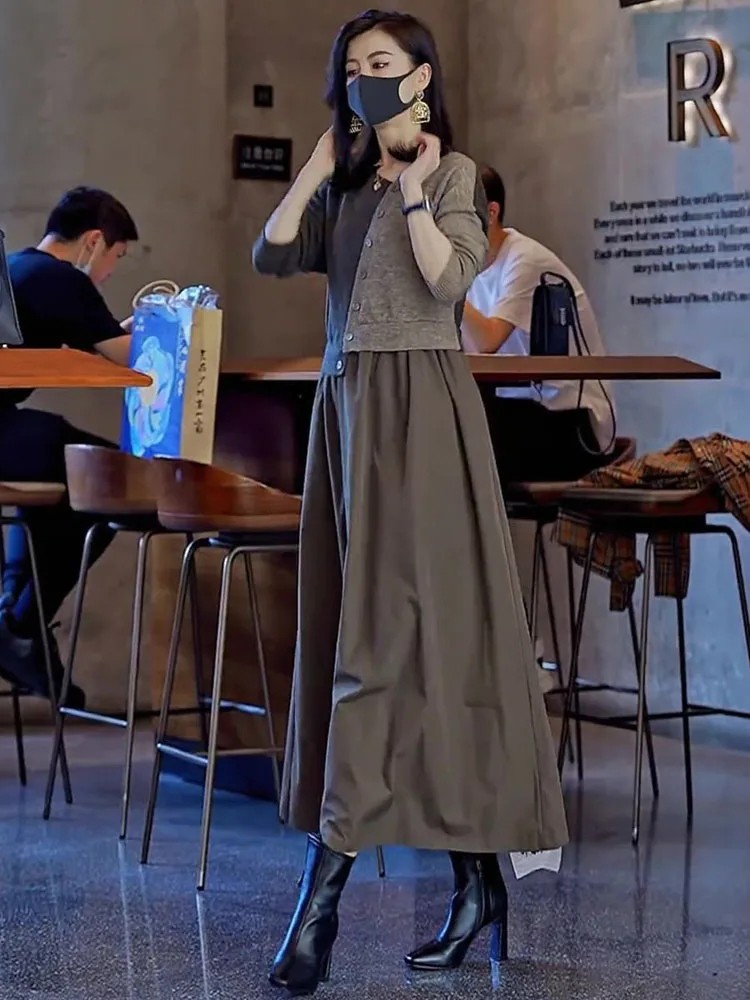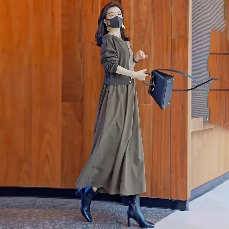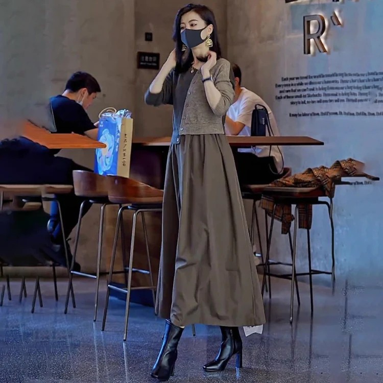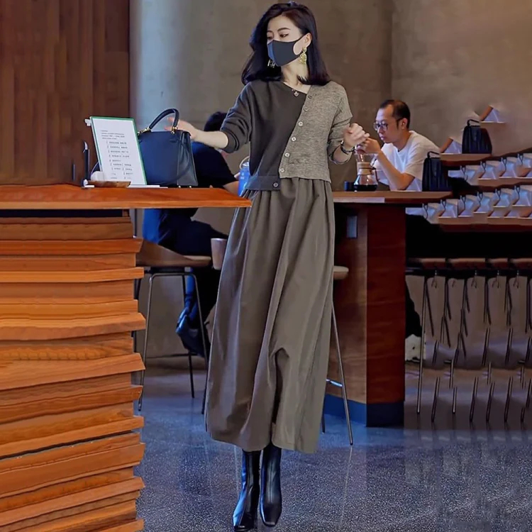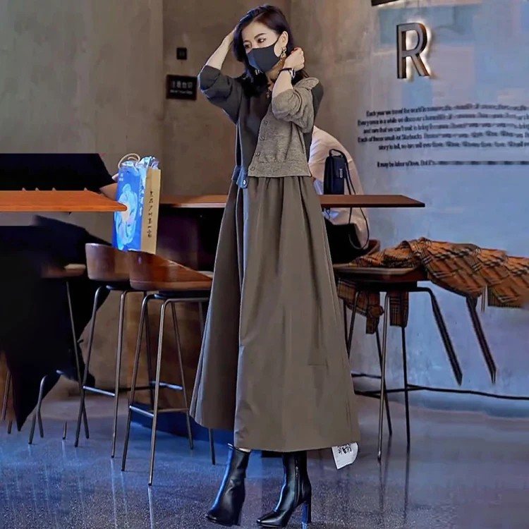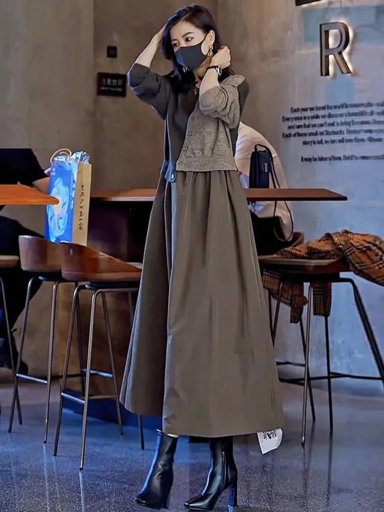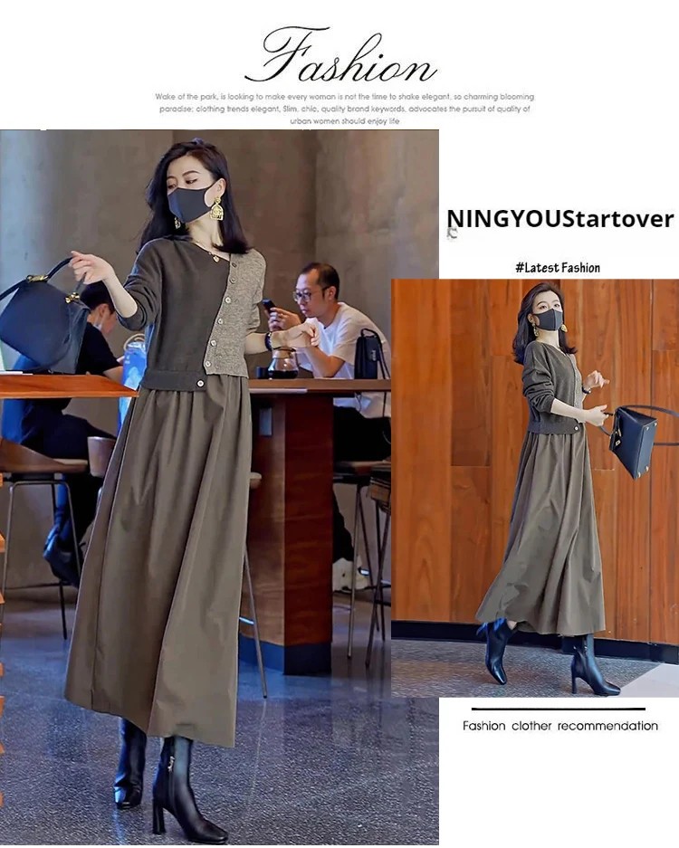 2分鐘前【限時活動 貨到付款】針織假兩件連衣裙,上身減齡顯氣質! - 一入組優惠價!NT1390