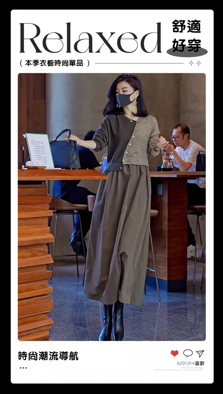 20分鐘前【限時活動 貨到付款】針織假兩件連衣裙,上身減齡顯氣質! - 一入組優惠價!NT1390