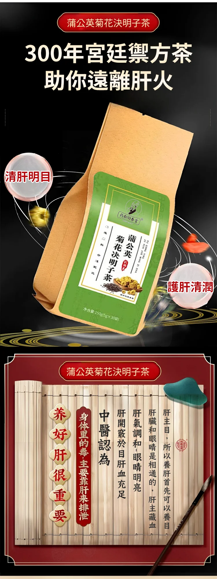 半小時前 蒲公英菊花決明子茶:養肝好茶!每天兩杯,養肝補腎,預防三高,保心護肝!【適合】熬夜加班、臉色不佳、容易長痘、口有異味、狀態不佳、掉髮、長斑、脾氣暴躁、有贅肉、降血壓! - 【體驗裝-明目降火】買一送三 4入組-NT$998