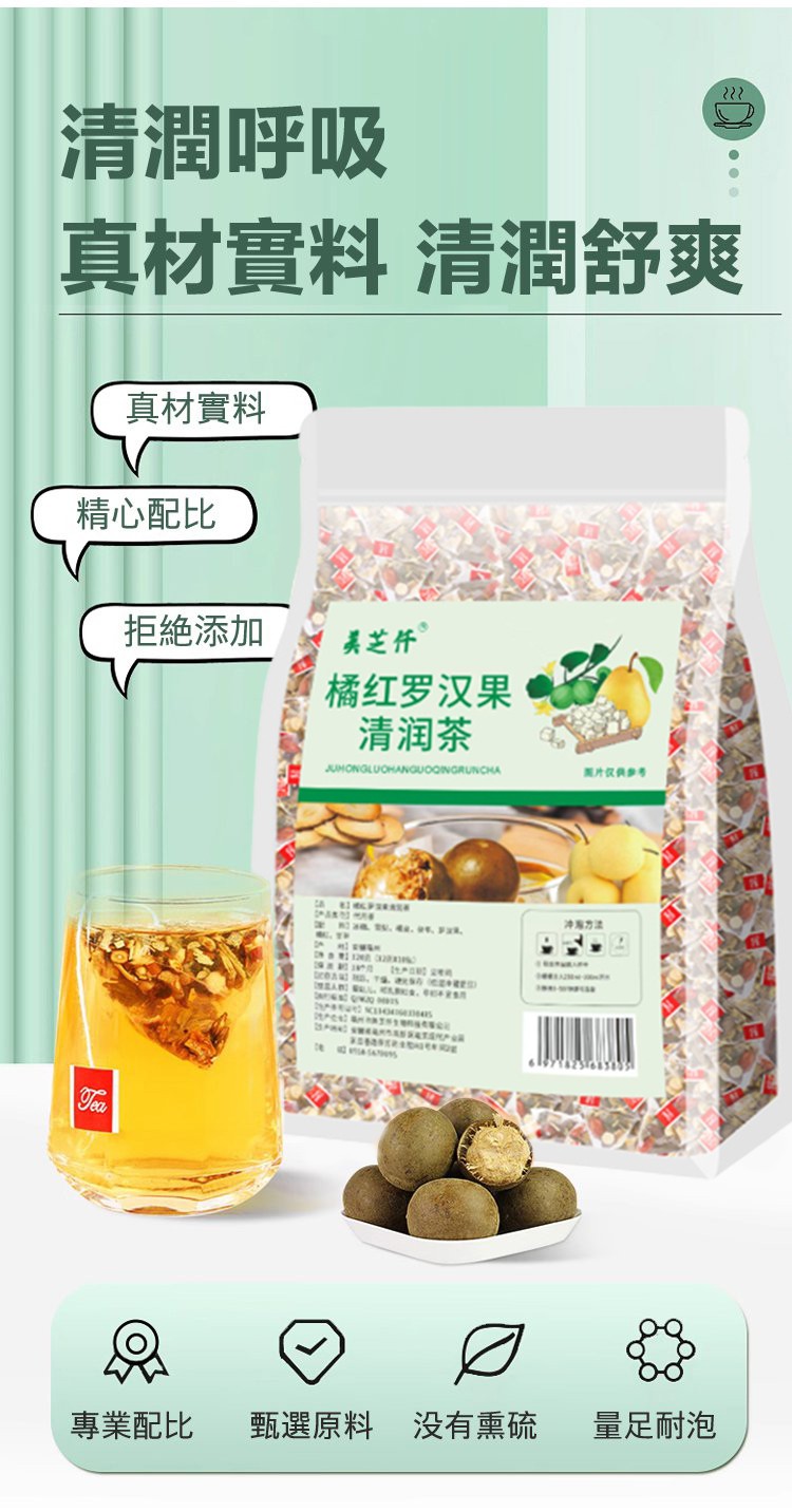 2分鐘前橘紅羅漢果清潤茶 止咳平喘 呼吸順暢 - 老闆力建【限時優惠】15入組(12克*10包)-NT$1299