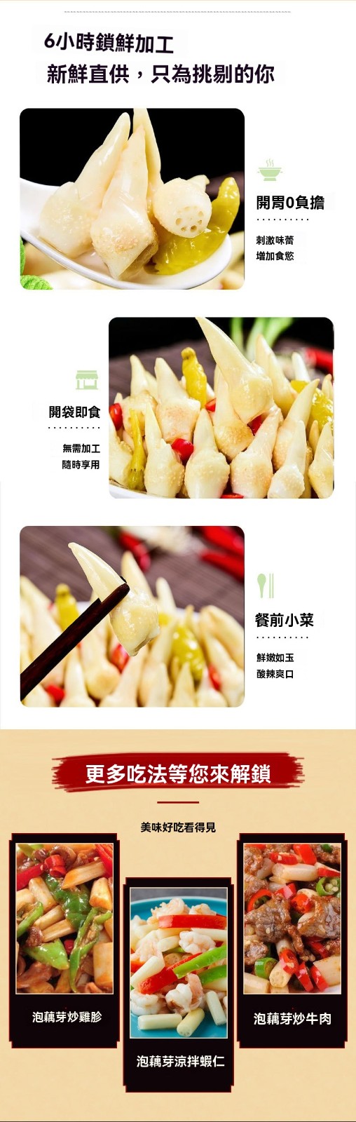 15分鐘前【白河藕芽】開胃小菜,酸辣爽口,特色口味,選用優質藕芽製作,炒菜、拌麵非常脆嫩 - 【破盤下殺 囤貨必選 買四發五】5入組 NT$1398