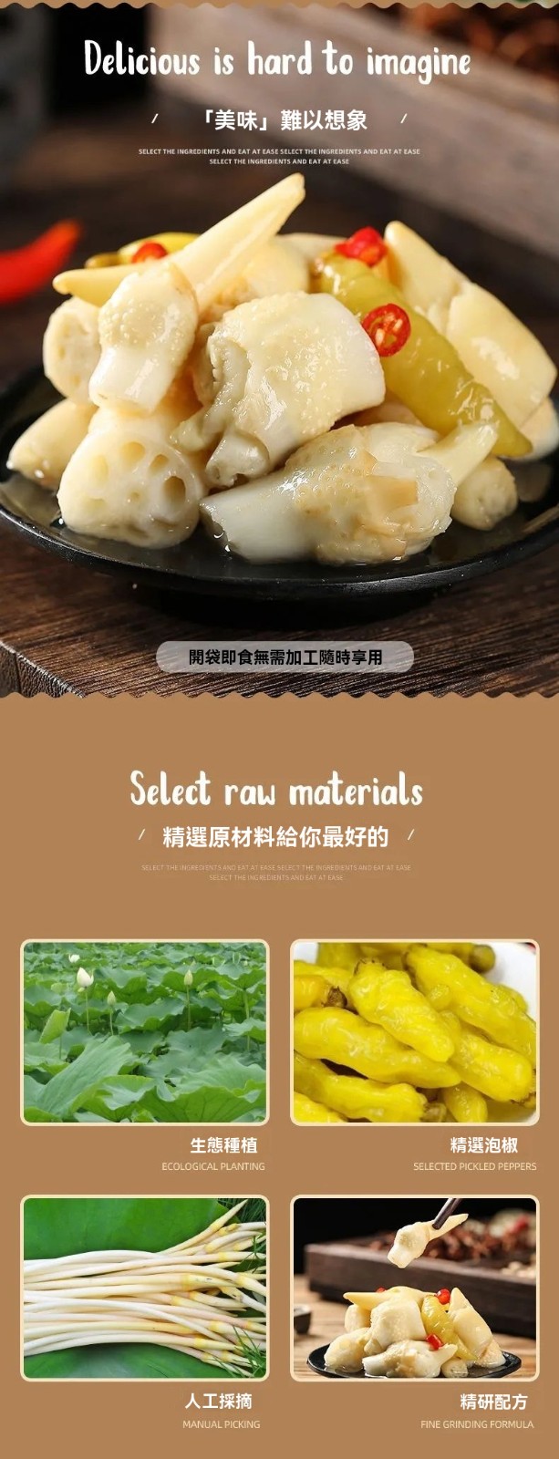 11分鐘前【白河藕芽】開胃小菜,酸辣爽口,特色口味,選用優質藕芽製作,炒菜、拌麵非常脆嫩 - 【破盤下殺 囤貨必選 買四發五】5入組 NT$1398