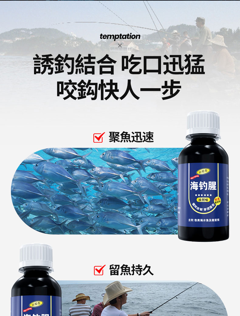 15分鐘前濃腥聚誘海釣腥聚魚誘魚海釣/路亞通用,連桿爆箱的秘密武器,保準你們都沒看過【釣魚腥】超遠程誘魚迅猛爆護,味型獨特,濃腥聚誘,促食咬鉤快人一步,那腥味遠距離誘魚,激發魚兒攝美容 - 【新品嘗鮮】濃腥聚誘海釣腥6入組-NT$998(均166/入)
