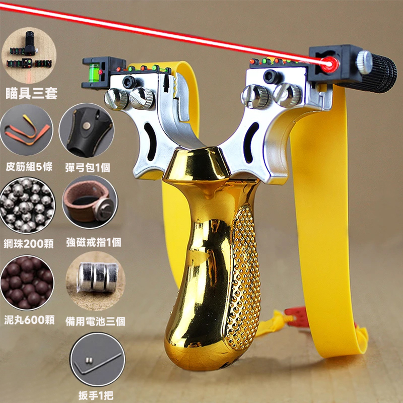 11分鐘前【百發百中彈弓】激光瞄準,水平矯正,刻度瞄準,50米內百發白中,全鋼材料,升級版,大號皮筋,庫存預警,先購先得 - 彈弓金色